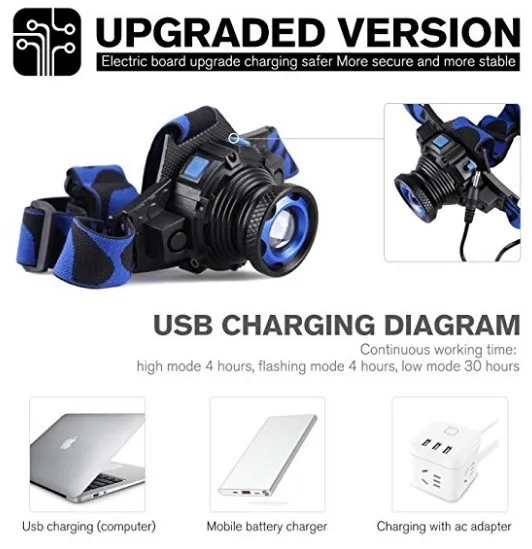 Hands-Free Convenience: A rechargeable LED headlamp offers the freedom to use both hands while still having bright, focused