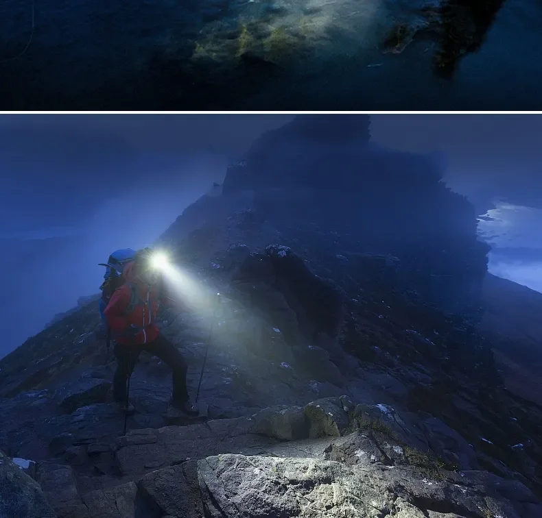for both close-up and long-distance illumination. Designed with a rechargeable battery, this headlamp eliminates the need for disposable