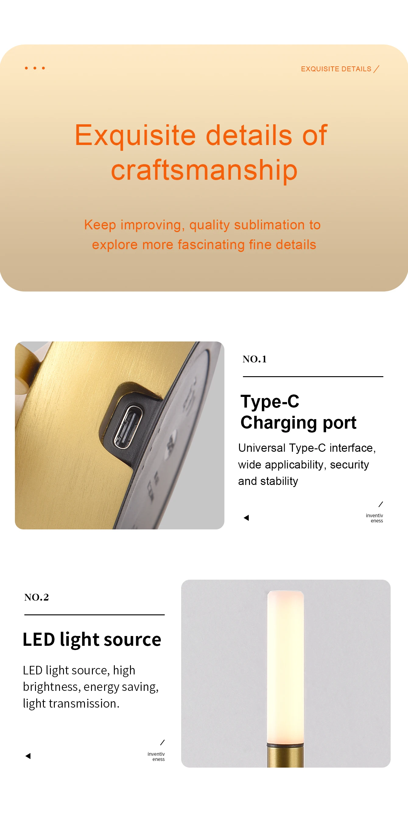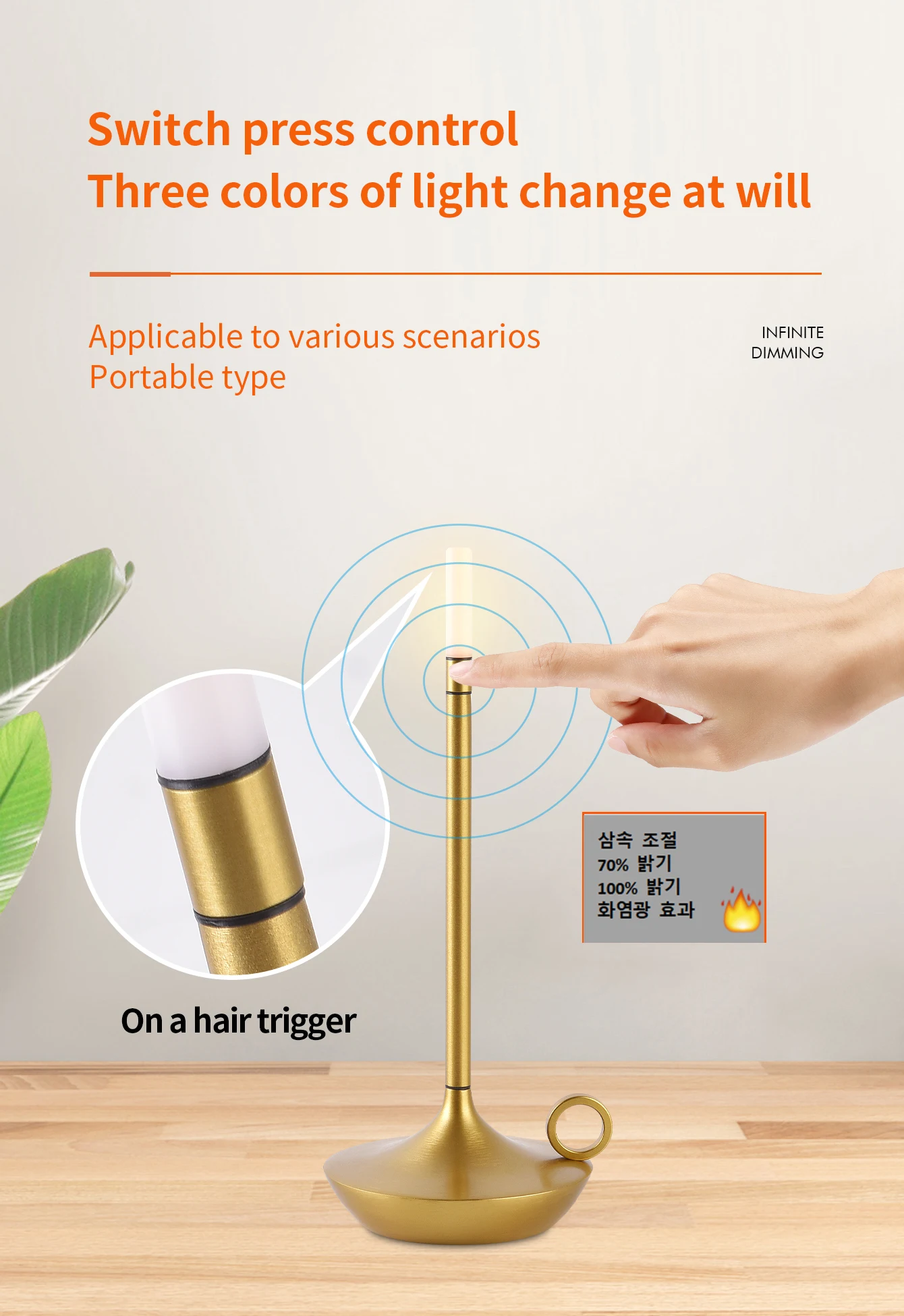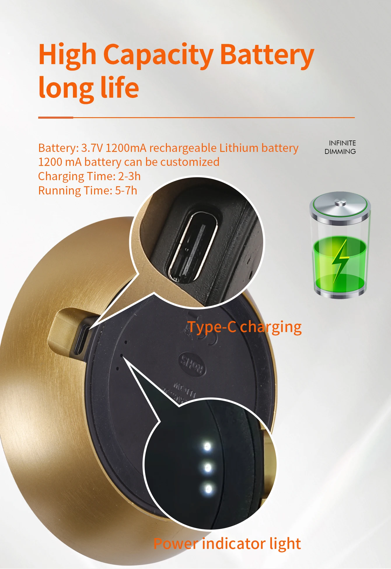 - Convenient Wireless Design: Enjoy the freedom of cordless lighting with a rechargeable battery.