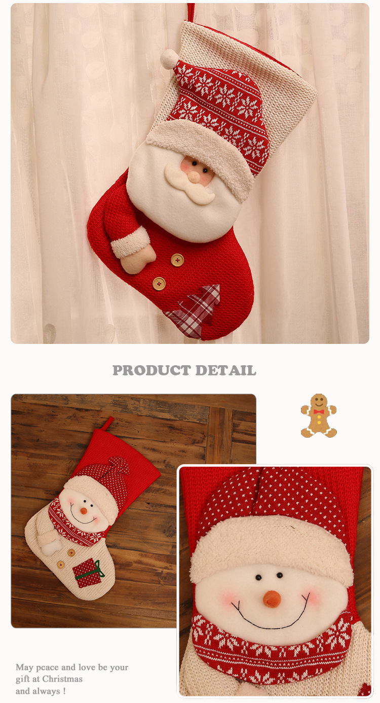 Red White Knitted Christmas Stocking Santa Claus Fireplace Decor Socks