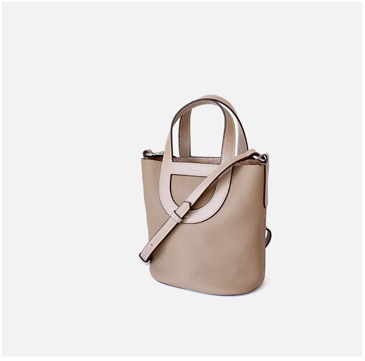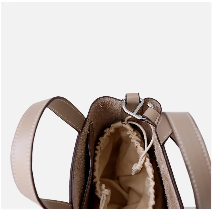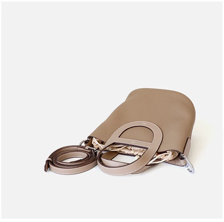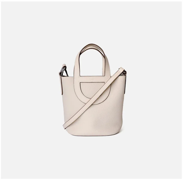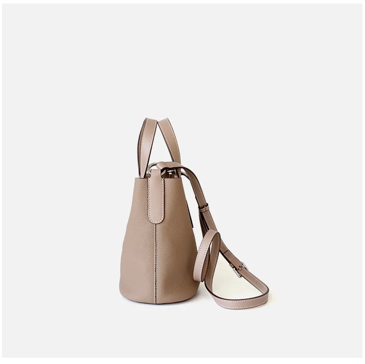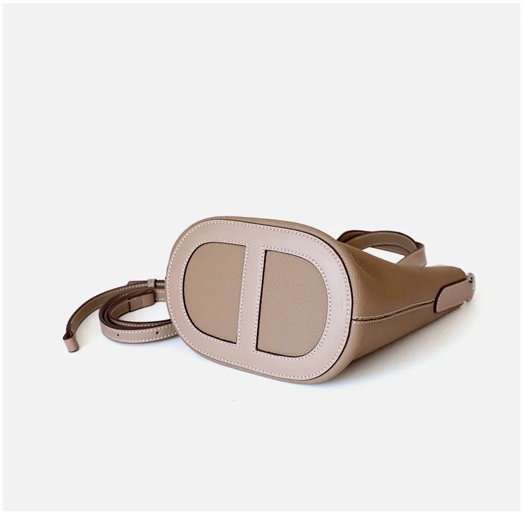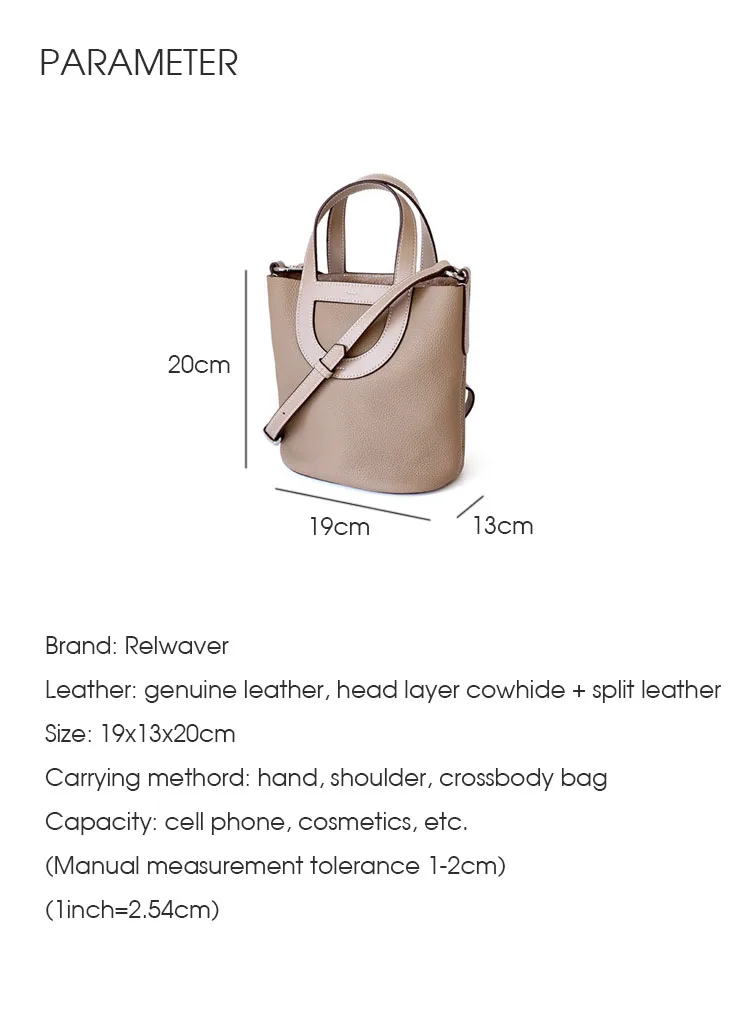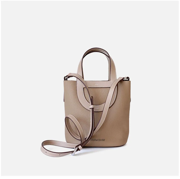 Relwaver genuine leather bags women 2023 spring summer bucket hand bag beige white grey small cow leather shoulder crossbody bag