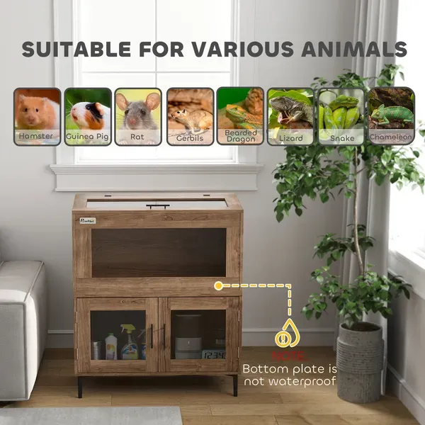 Designed for easy maintenance, the tank features front or top-opening doors for convenient access during feeding or cleaning. The escape-proof locking system ensures safety, while the waterproof base makes it suitable for dry or humid setups.