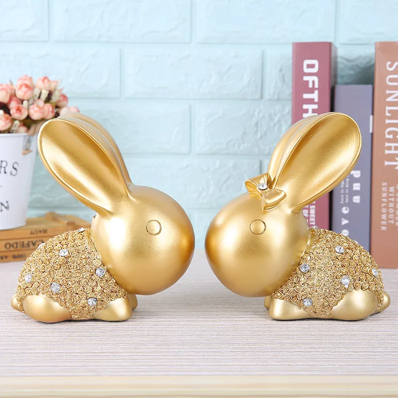 The golden rabbit sculpture adds a whimsical yet elegant touch, making it a standout feature in any room.
