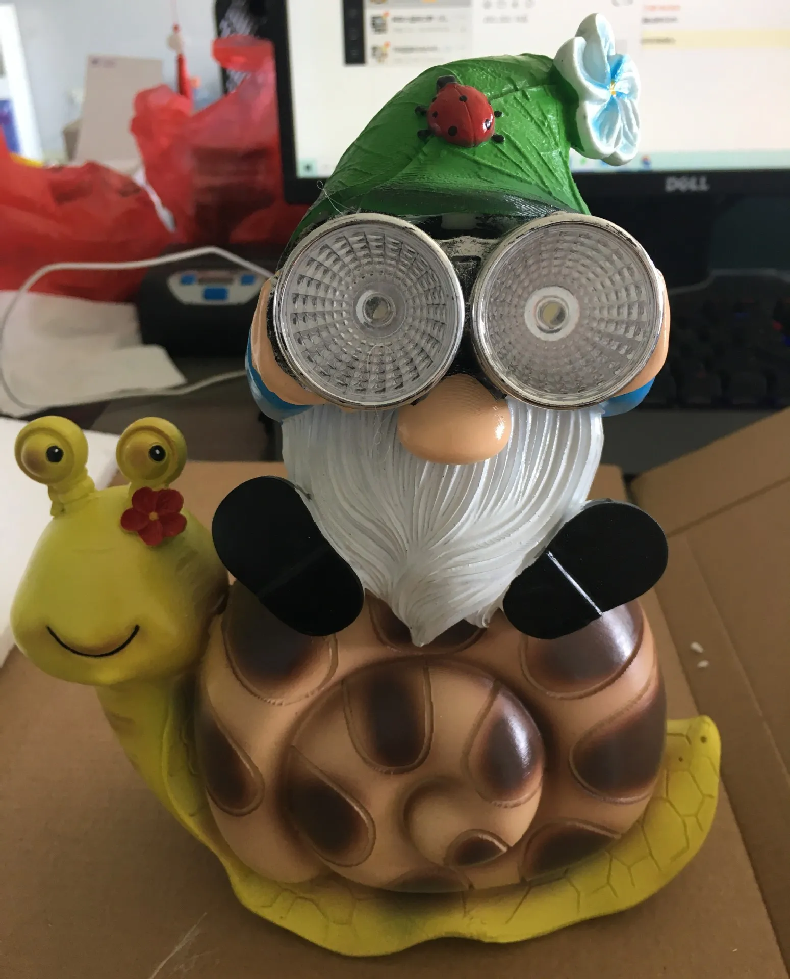 Product Description for Resin Garden Gnome Snail Statue Decor with Solar Lights