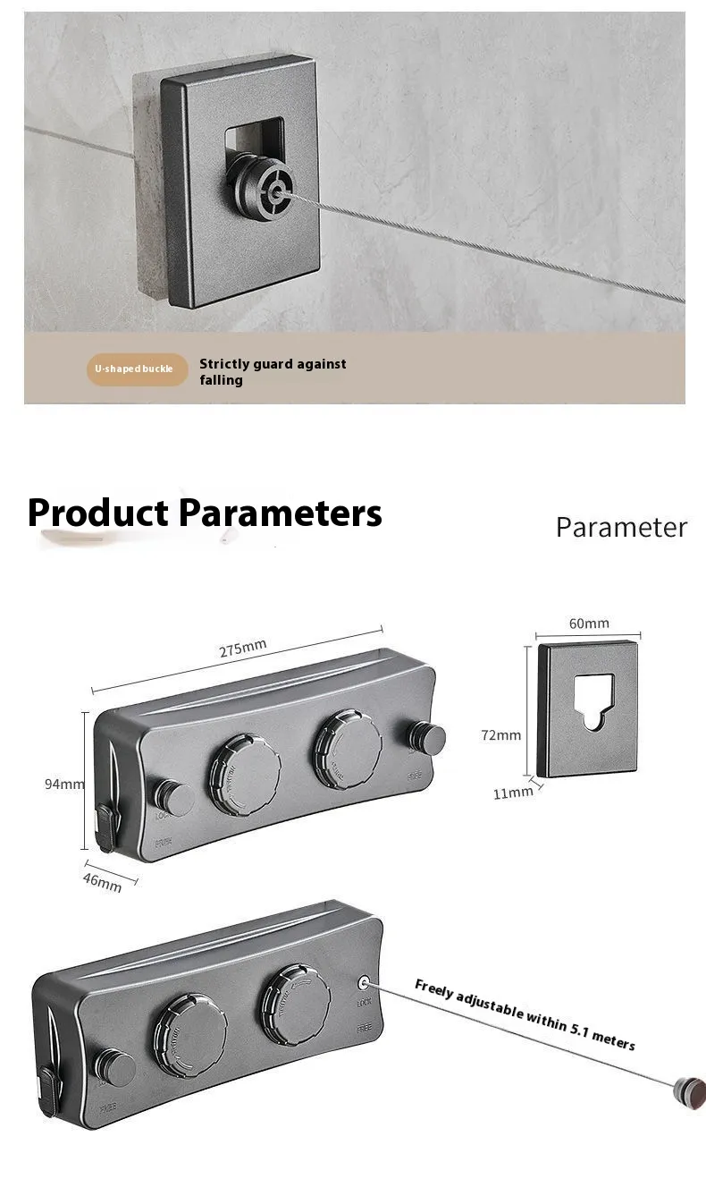 Durability: Crafted from high-quality materials, the Retractable Clothesline is built to last, providing