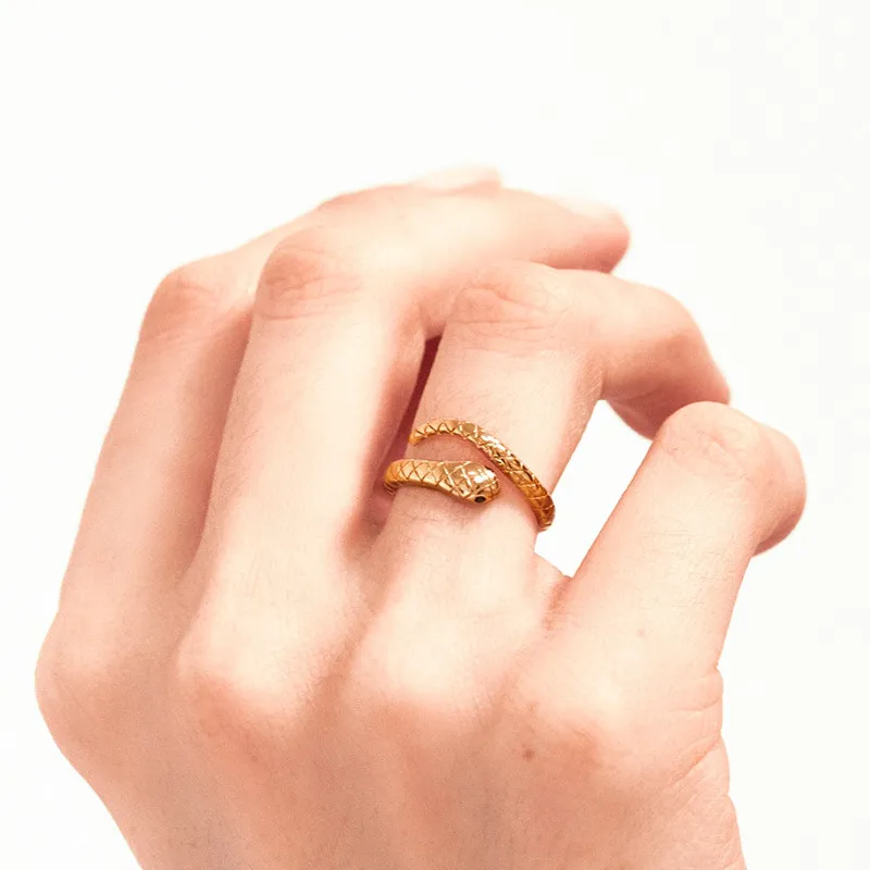 The snake's coiled shape is designed to wrap around your finger, offering a dynamic look that represents the cycle of life and personal growth. The detailed scales and sharp curves create a striking visual effect, giving this ring a bold and unique appeal that commands attention.