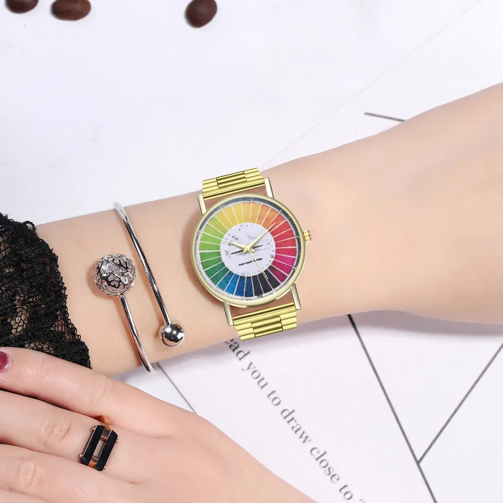 - Artistic retro watch featuring a rotating color wheel