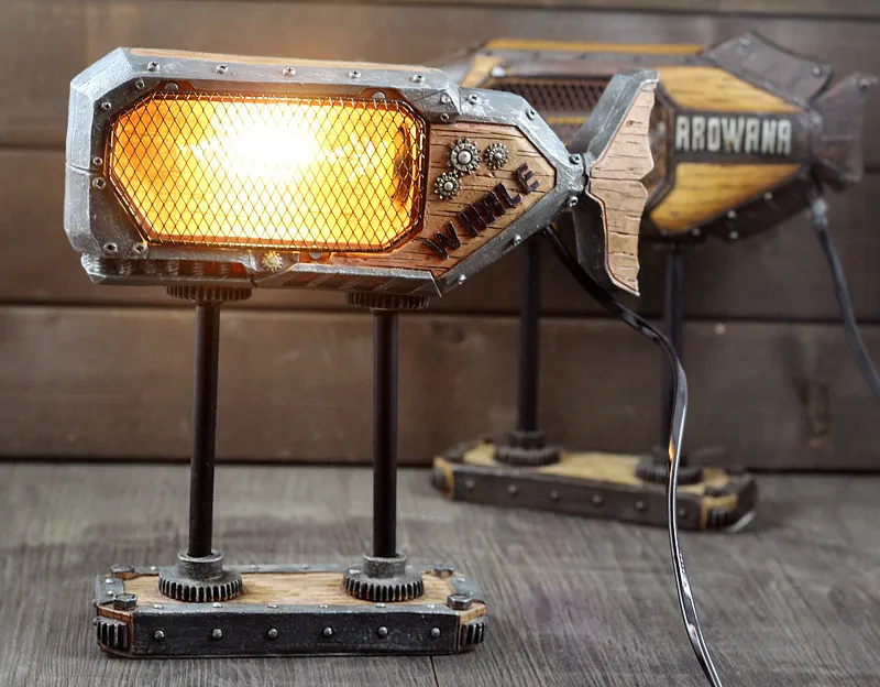 Retro Distressed Fish Iron Fish Lamp – LED Table Lamp with Vintage Charm