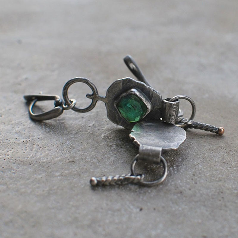 Retro Exotic Geometric Ancient Metal Inlaid Beccarite Asymmetric Eardrops