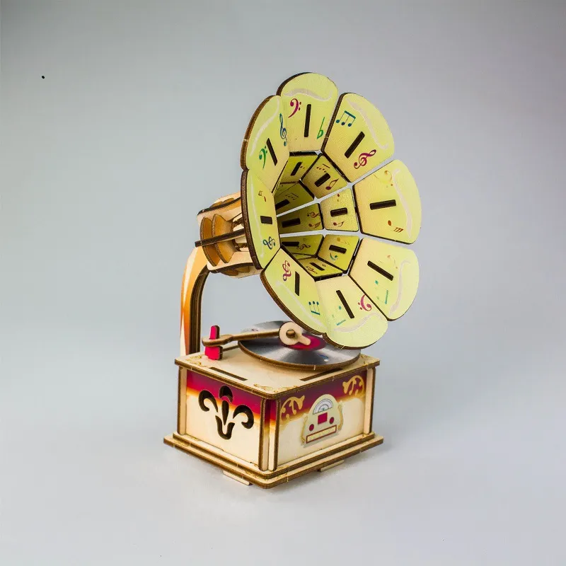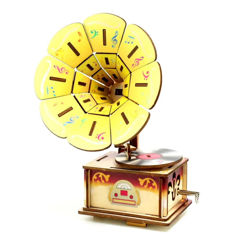 The Retro Gramophone Music Box is inspired by the classic gramophones that were once the epitome of audio technology. Featuring a retro-style horn, ornate detailing, and high-quality materials, this music box offers a vintage look with modern craftsmanship. The beautifully detailed gramophone arm and horn capture the spirit of the past while functioning as a delightful music box that plays your favorite tune.