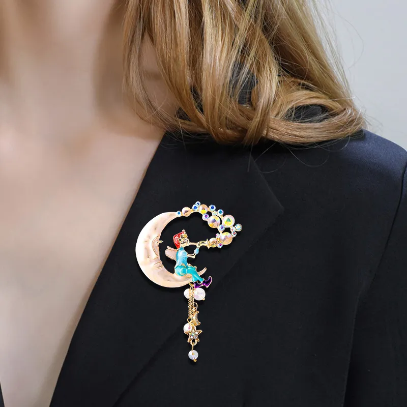 For formal events, the moon brooch brings an avant-garde touch to your ensemble. Wear it on a blazer lapel, evening gown, or fancy scarf to elevate your elegant attire. The celestial symbolism adds an ethereal charm, making it the perfect accessory for someone who wants to make a stylish and meaningful statement.