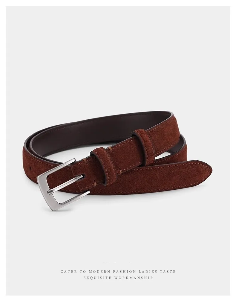 Retro Pin Buckle Suede Cowhide Belt