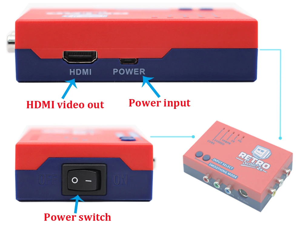 2. RetroScaler2X support component / AV/ SV signal input. Before purchasing, please confirm whether your game console can output these three video signals.