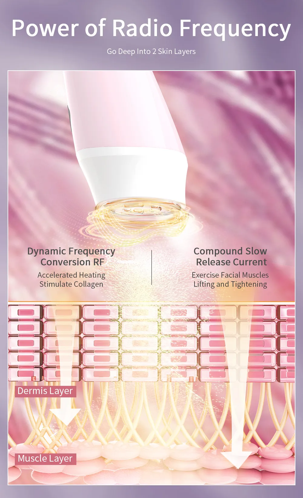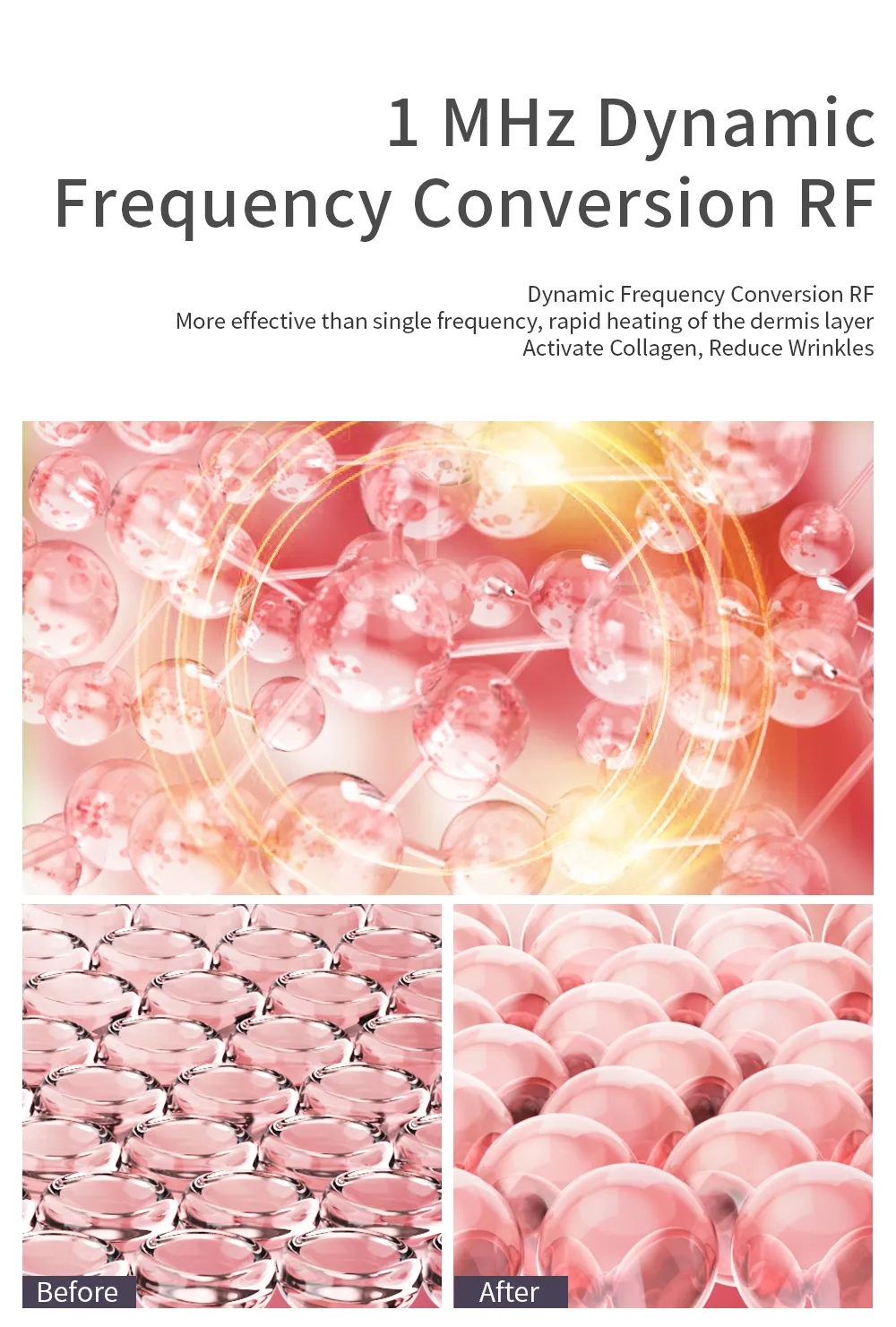 1 MHz Dynamic frequency conversion RF, accelerated heating, stimulate collagen.