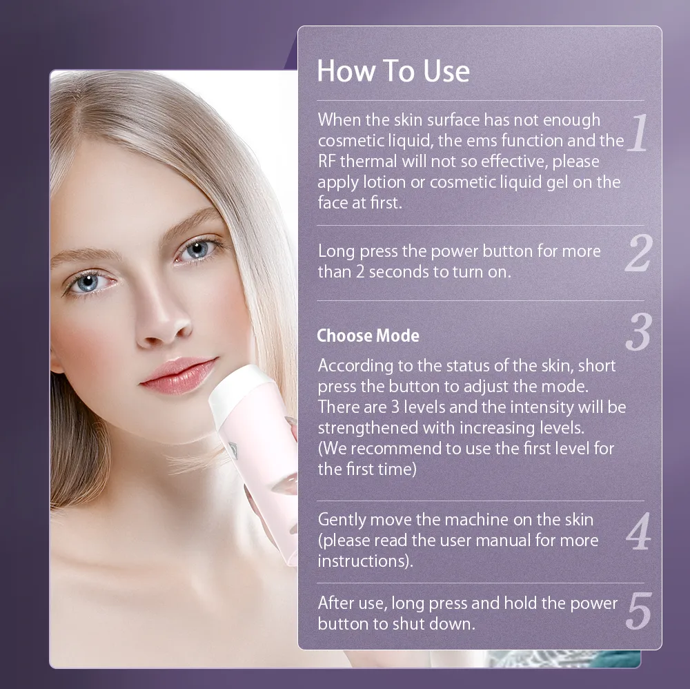 This multi-functional beauty device targets a range of skin concerns, from wrinkles and sagging to uneven skin tone and texture issues. Whether you're combating the early signs of aging or looking to enhance skin appearance, this instrument provides a targeted solution for smoother, tighter, and more rejuvenated skin.