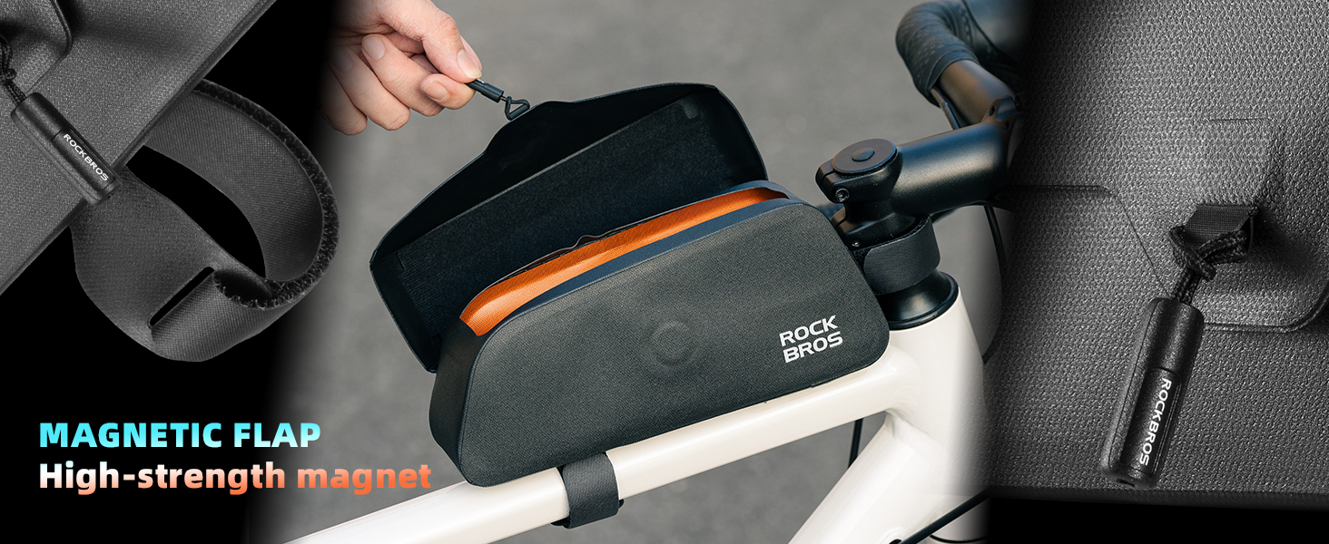 - [MAGNETIC FLAP]: The inner layer of this bike bag features a high-strength magnet, making the magnetic flap easy to open and close. You can access your items easily, even with just one hand