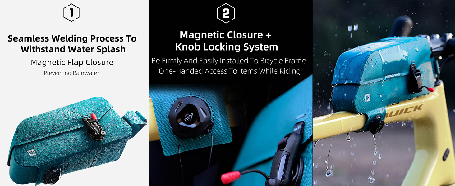 - [MAGNETIC FLAP]: The inner layer of this bike bag features a high-strength magnet, making the magnetic flap easy to open and close. You can access your items easily, even with just one hand