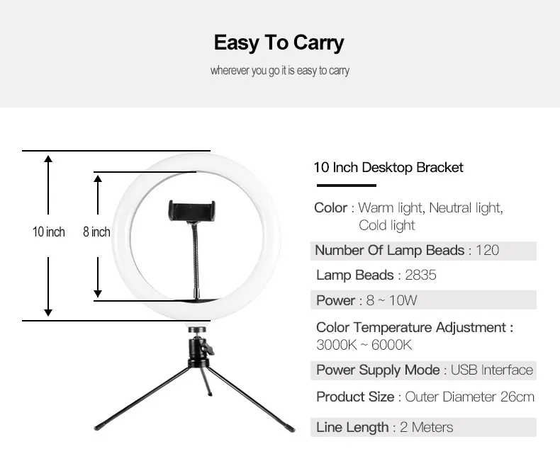 Power Source: Ring lights can be powered by USB, AC adapters, or rechargeable batteries. The power source you choose will