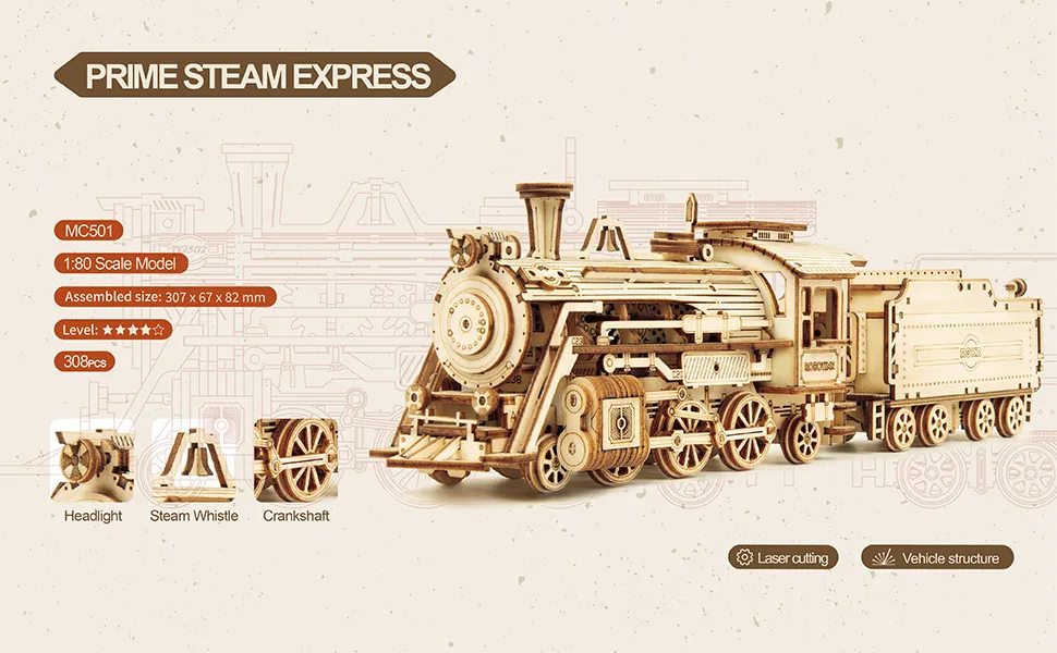 ROBOTIME 3D Wooden Puzzle Prime Steam Express DIY Model Building Kits Xmas Gift - Theme: Prime Steam Express