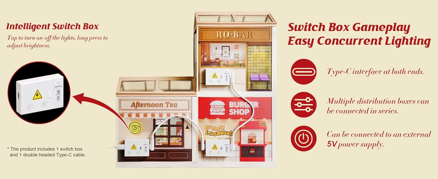 The ROBOTIME Yum Burgers Miniature Dollhouse Kit is a playful blend of creativity, craftsmanship, and charm. Designed for New Zealanders who love miniatures and quirky decor, this LED-lit burger shop model kit offers a hands-on project and a beautiful final product. Perfect for DIY enthusiasts, burger fans, or anyone looking for a unique decor piece, this kit brings the fun of a classic burger joint into your home.