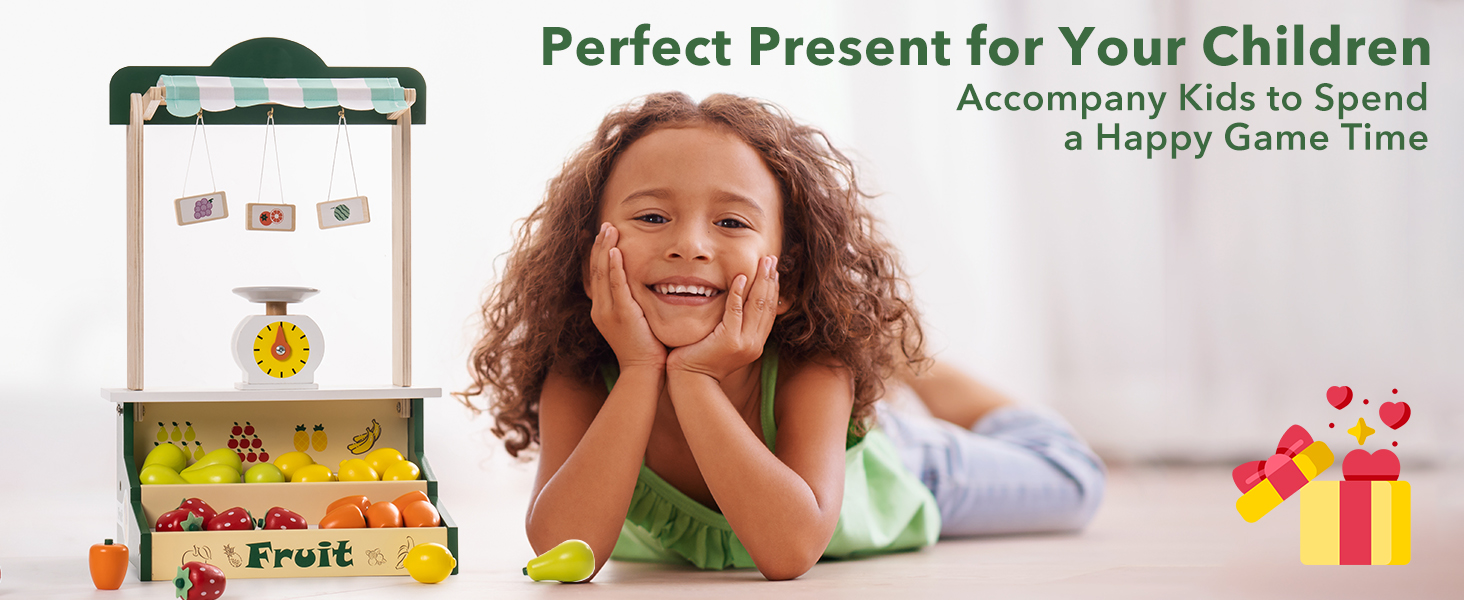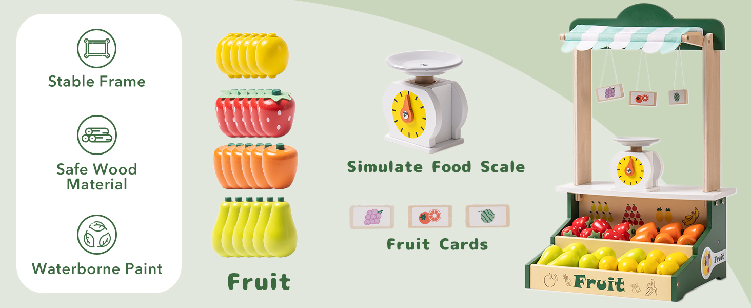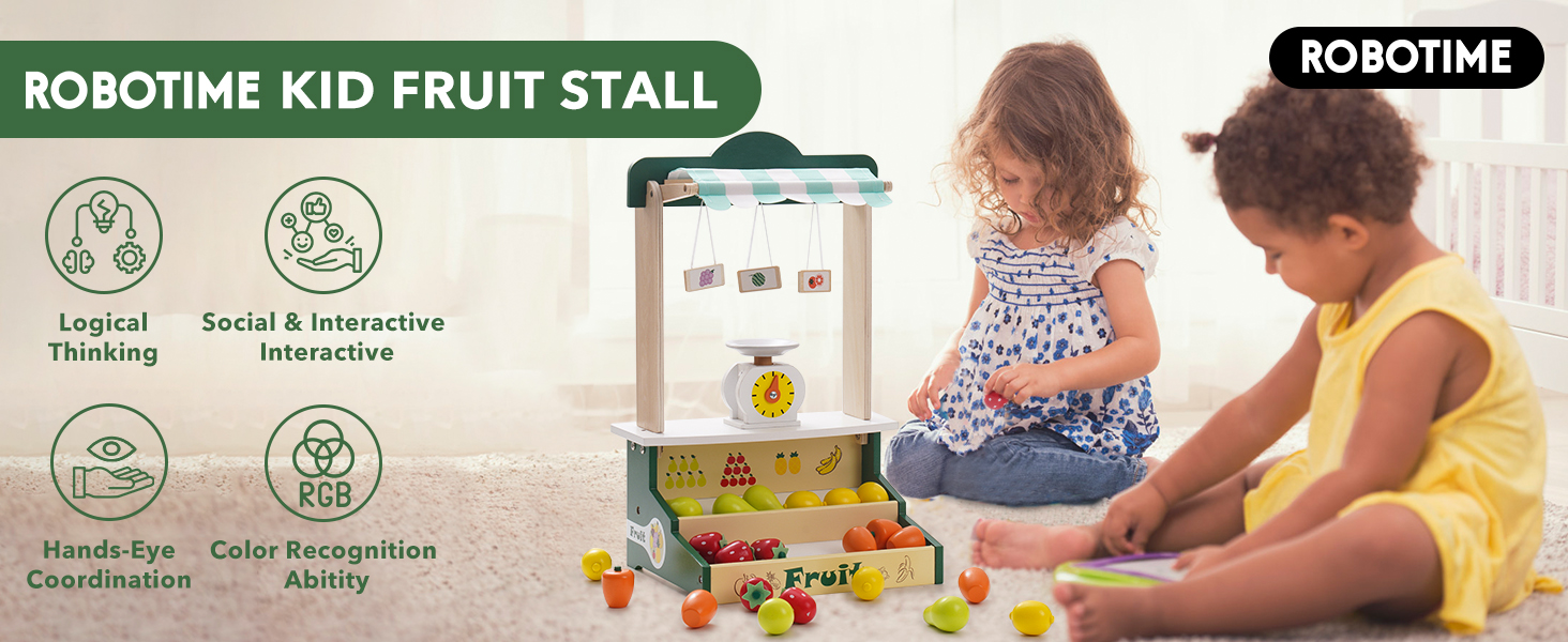 ROBOTIME Wooden Farmers Market Stand Fruit Stall Toy Grocery Store Set For Kids