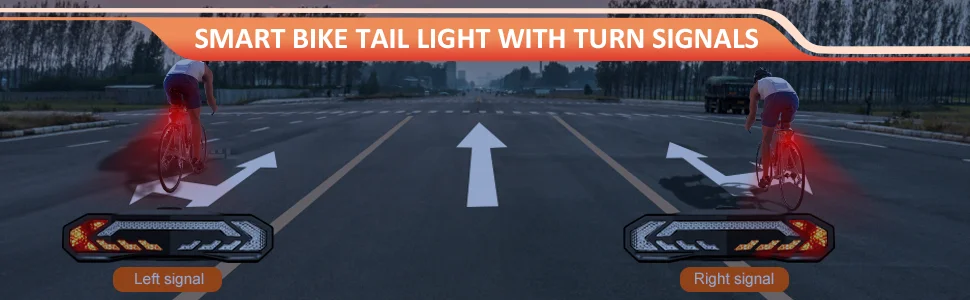 ● [BIKE TAIL LIGHT WITH TURN SIGNALS FUNCTION]: Turn on right/left turn signals through the wireless remote control and get drivers' attention from several blocks away, securing your safety when riding in traffic. The taillight will beep when you turn left or right, keep beeping for 2 minutes, and then turn off automatically. Designed with the smart brake sensor, bike light will auto highlight for 2s after braking to alert other drivers behind you.(Except for Emergency Light Mode)