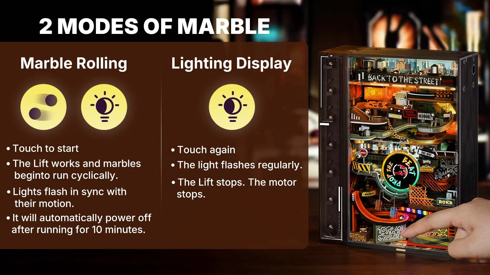 Perfect for hobbyists, puzzle lovers, and those who enjoy hands-on projects, this kit provides hours of engaging assembly, enhancing problem-solving, patience, and fine motor skills. The moving parts and marble run functionality make it interactive, while the detailed street-themed design adds a modern artistic touch to any room.