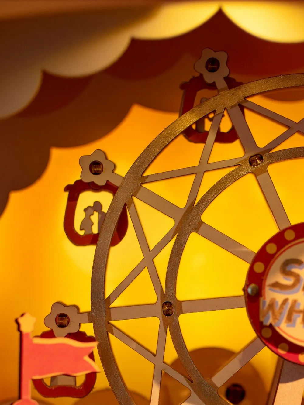 2. Intricate exterior details, including roller coaster silhouettes and a movable circus, providing a fun and engaging experience.
