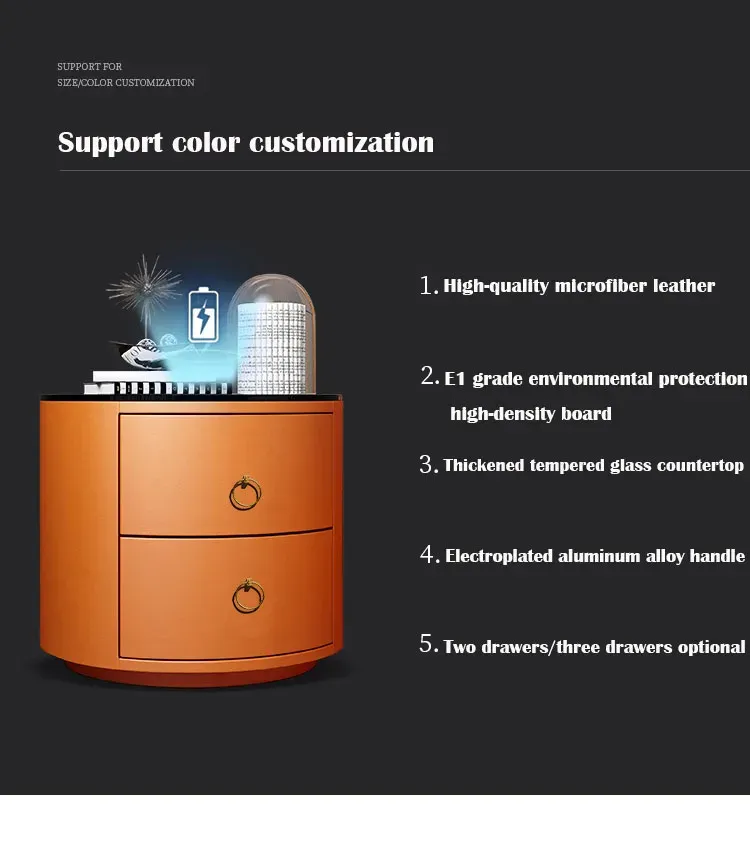 Space-Saving Storage: With built-in drawers, open shelves, or cabinets, our round bedside tables offer convenient storage