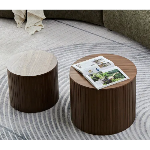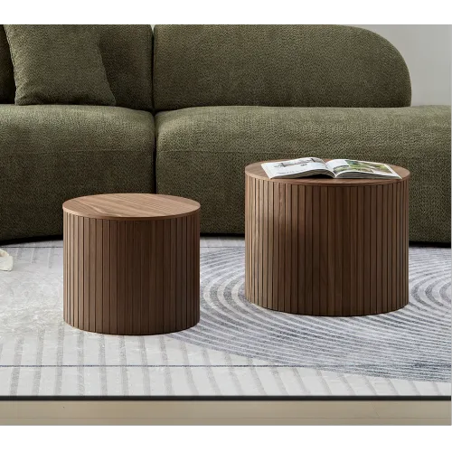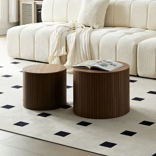MDF Nesting Table Set 2 Pieces, Handcrafted Round Coffee Table in Living/Sitting Area, Walnut Colour