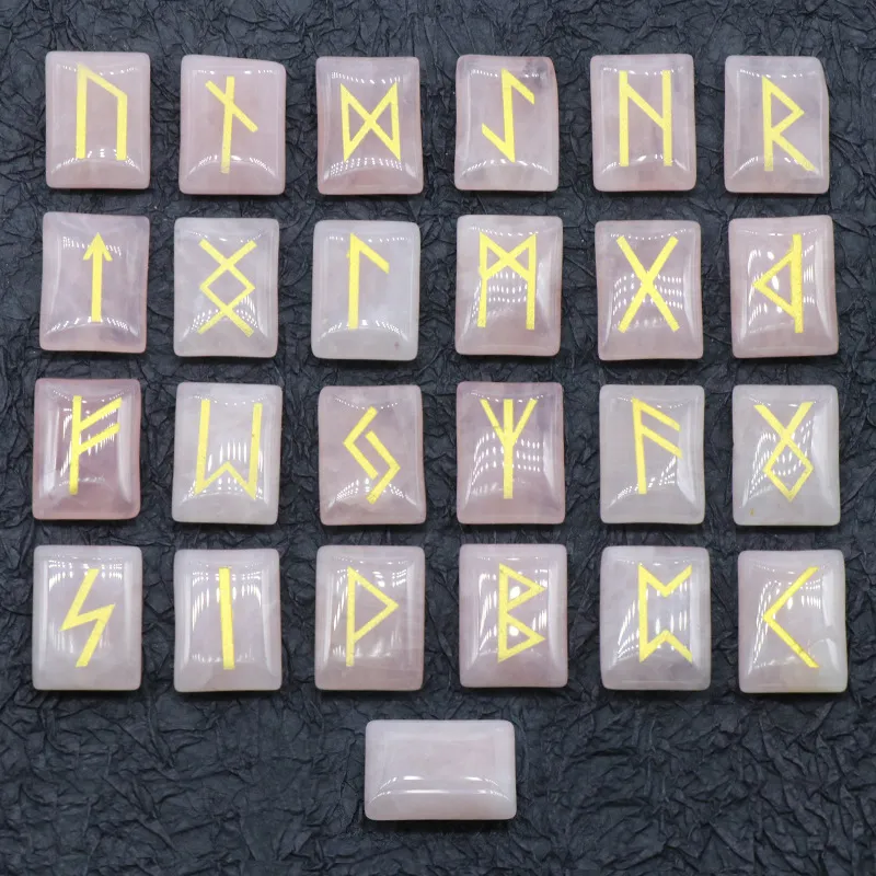 The runes are meticulously carved into the surface of the semi-precious stone, with each symbol representing a specific energy or concept. The carving process is done with precision, ensuring that the runes are clear and well-defined. The detailed carvings not only provide functional use for divination but also add an aesthetic and spiritual layer to the stone, making it a beautiful item for display.