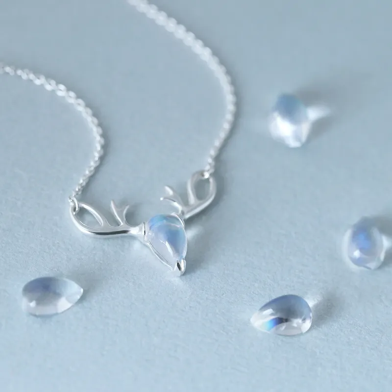 S925 Elk Necklace Forest Moonstone Pendant Clavicle Chain