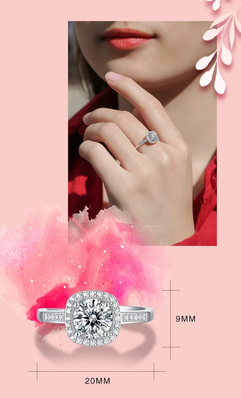 Made from genuine S925 sterling silver, this ring offers both durability and beauty, ensuring long-lasting wear while maintaining its lustrous shine. The surrounding halo design adds a modern yet classic appeal, making it the perfect choice for engagements, anniversaries, or as a meaningful gift.