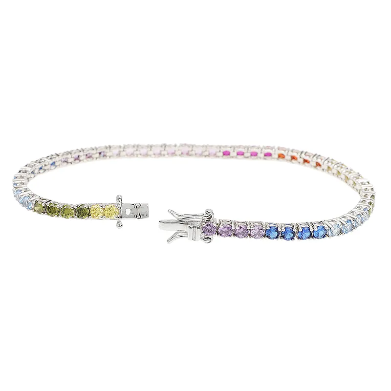 This bracelet is more than just a piece of jewelry—it's a statement of elegance and individuality. The stunning array of colors and the luxurious shine of sterling silver make it a versatile addition to any jewelry collection. Whether you're wearing it alone for a minimalist look or pairing it with other accessories for a more layered style, it adds a touch of sophistication to any outfit.