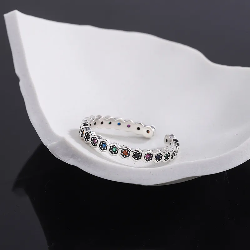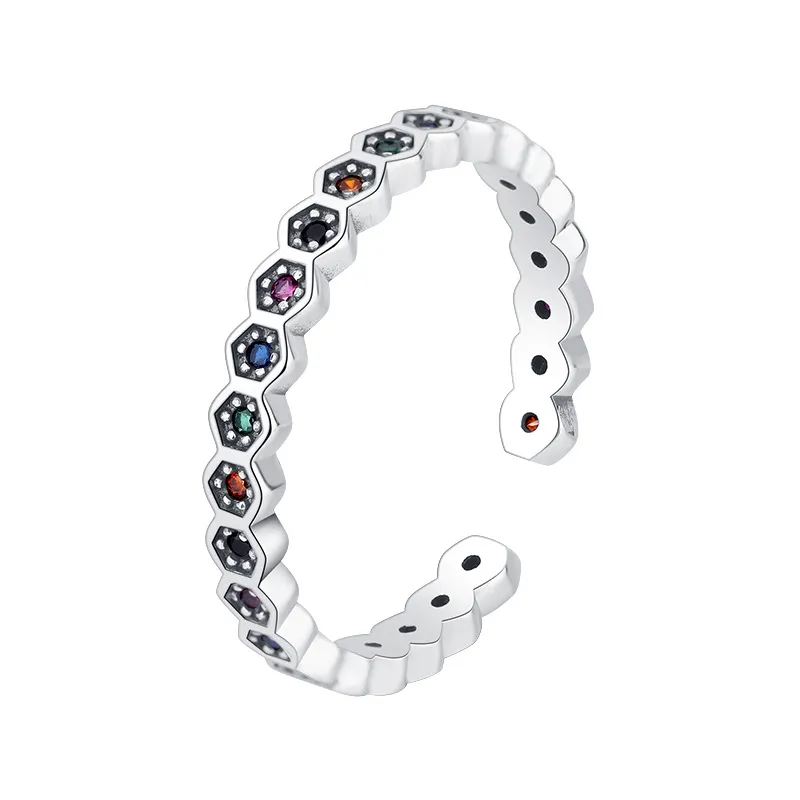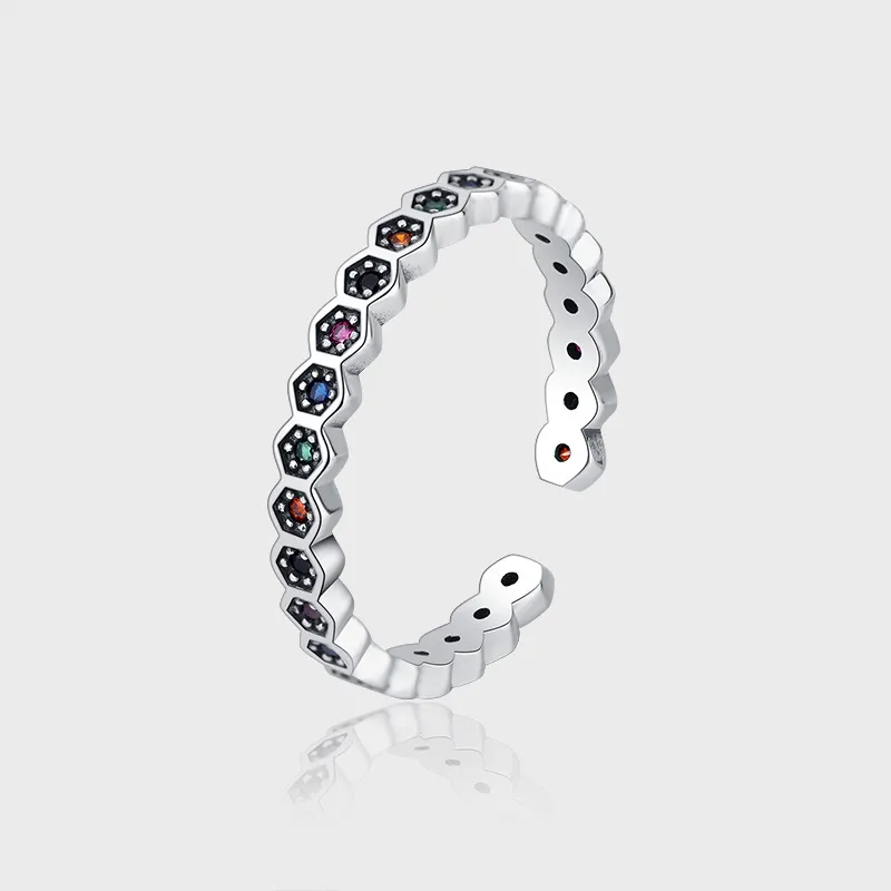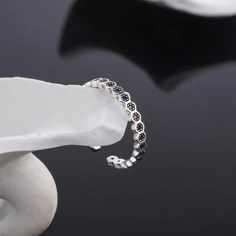 S925 Sterling Silver Niche Design Luxury Honeycomb Rainbow Ring Female