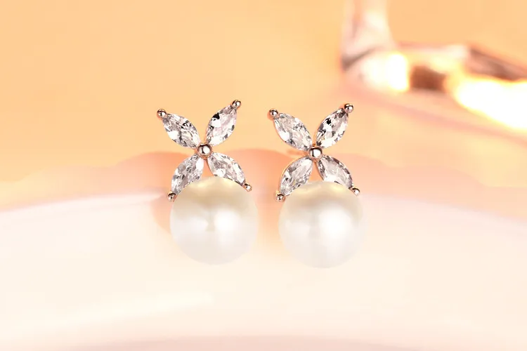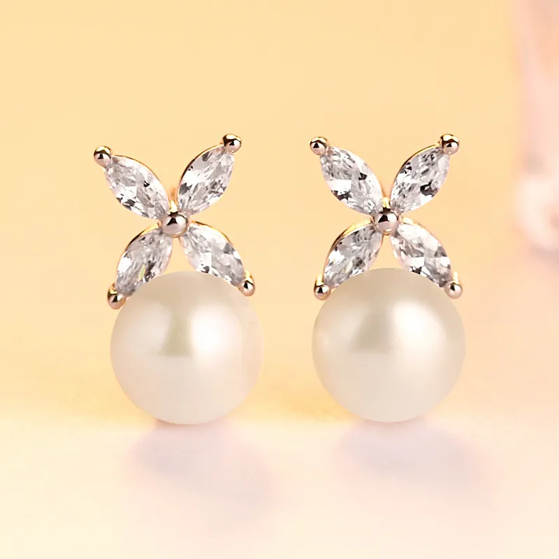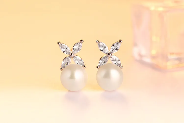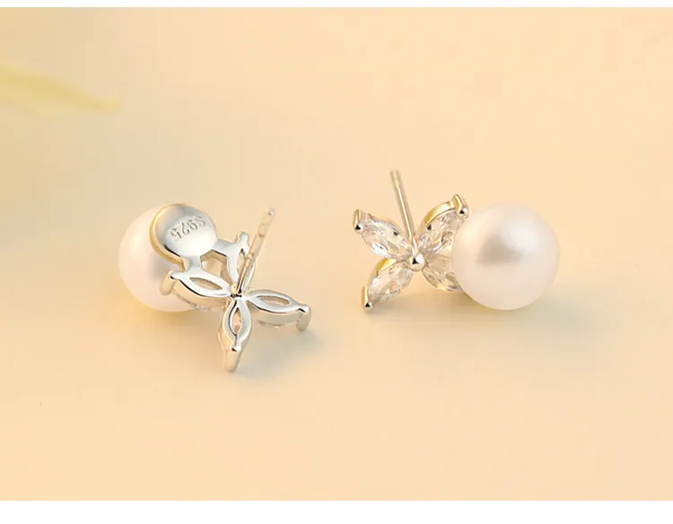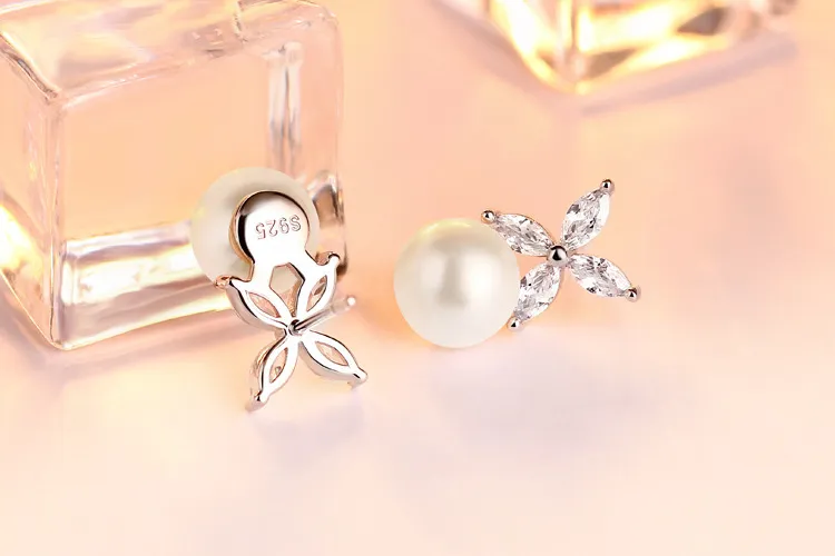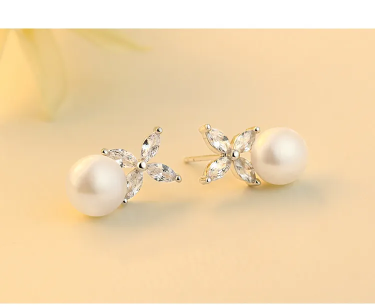 S925 Sterling Silver Stud Earrings Inlaid Natural Pearl Simplicity European And American Earrings