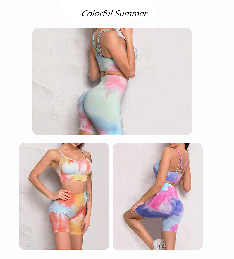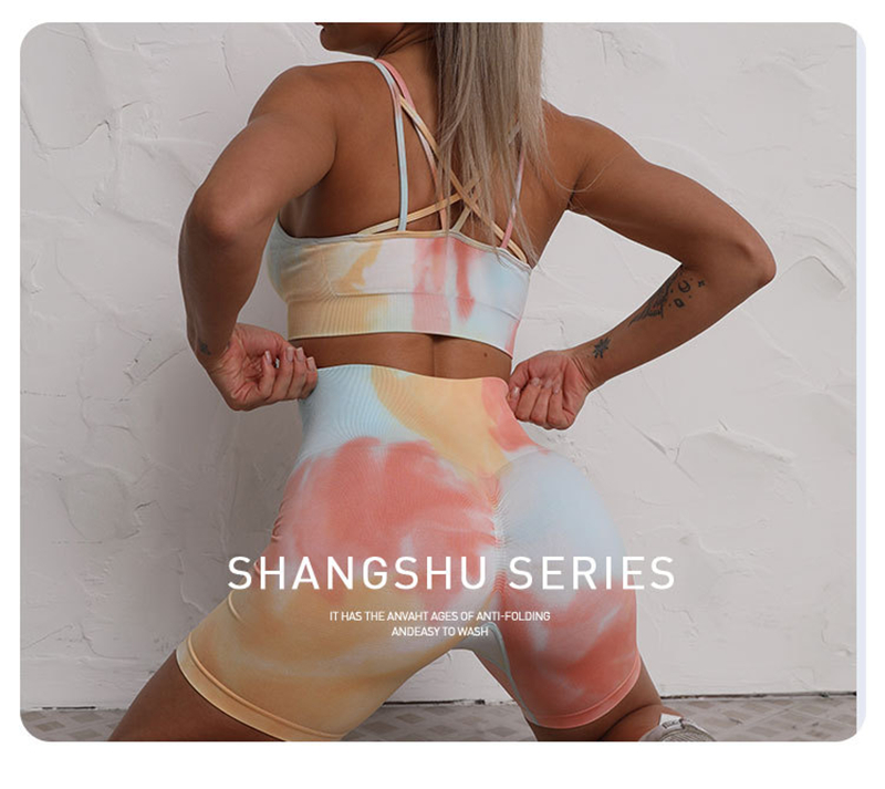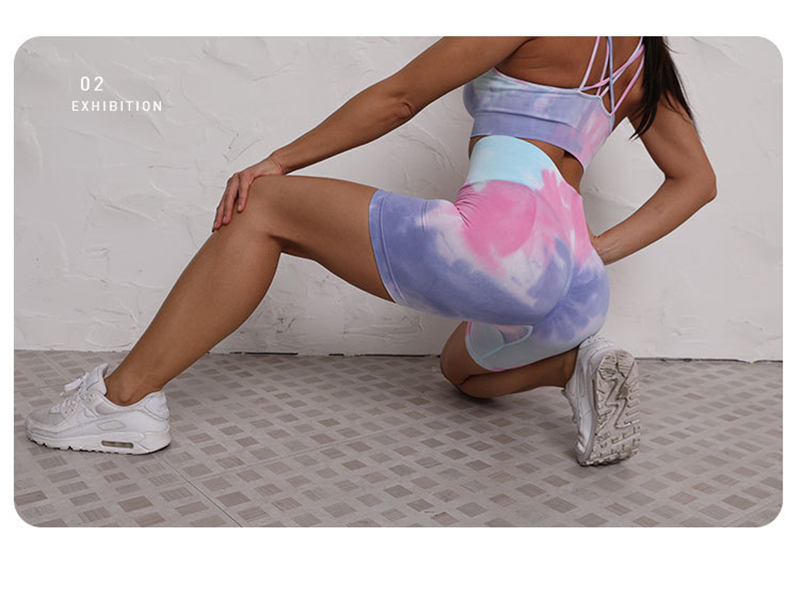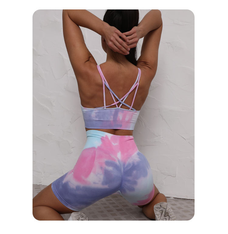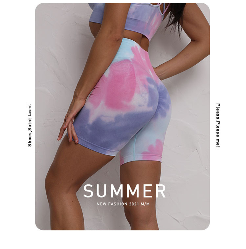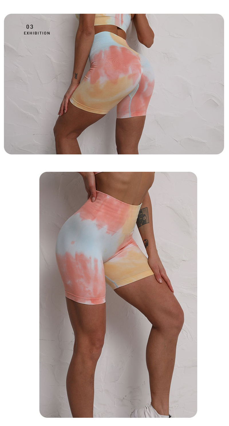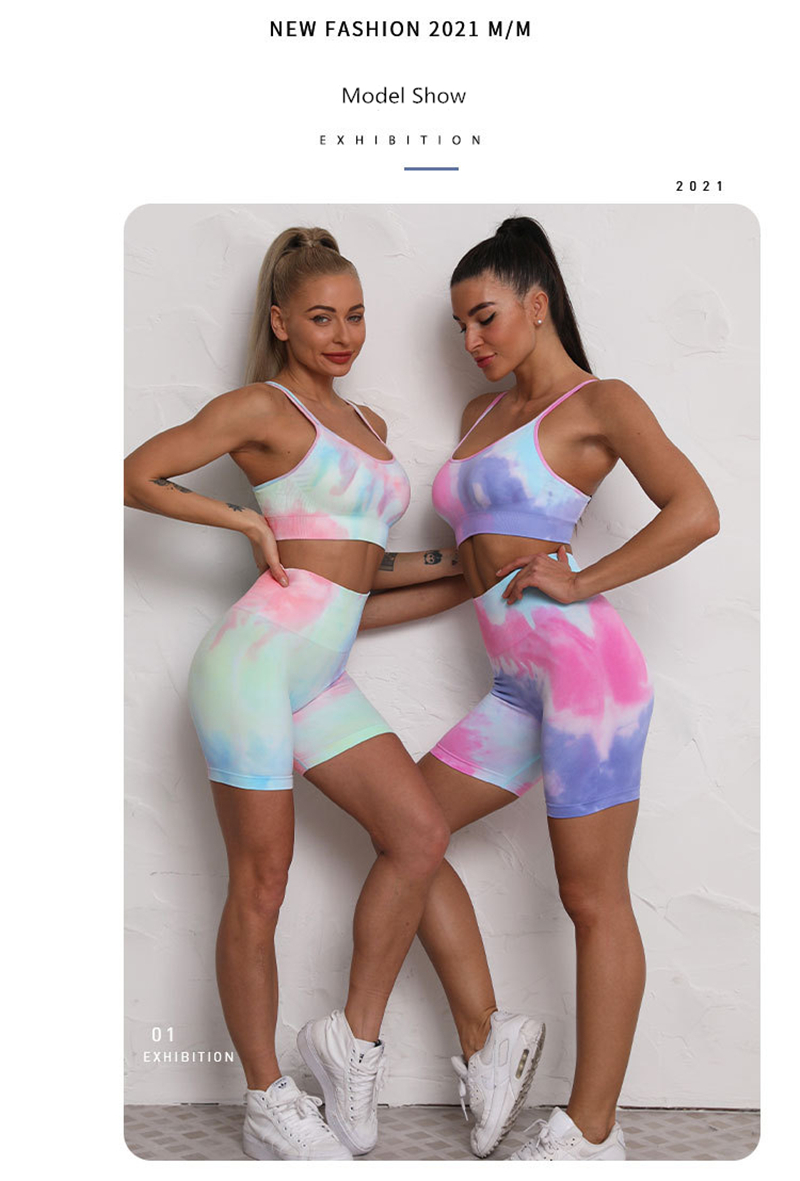 Seamless Sport Set Women Two Piece 2PCS Tie Dye Crop Bra Shorts Workout Outfit Fitness Wear Running Gym Female Yoga Sets Clothes
