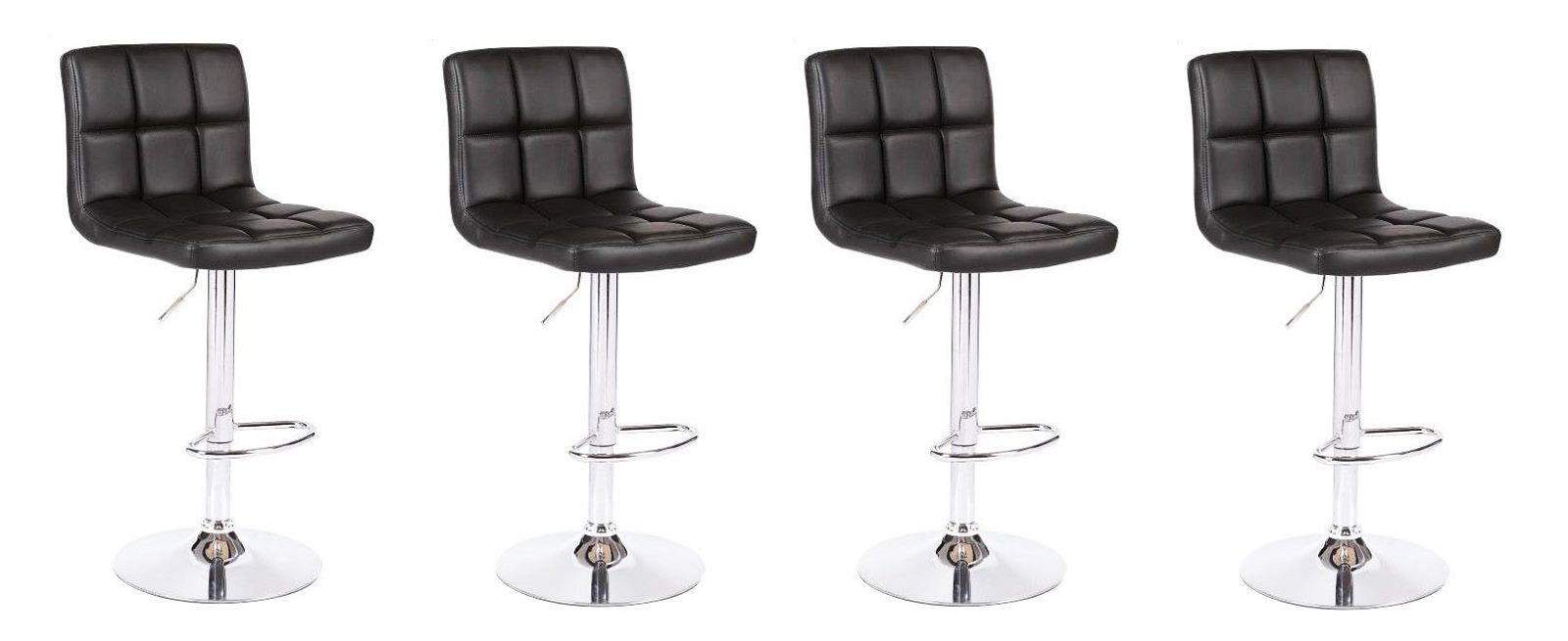 Set of 4 Adjustable Bar Stools with Black Padded Seats - Modern Swivel Design