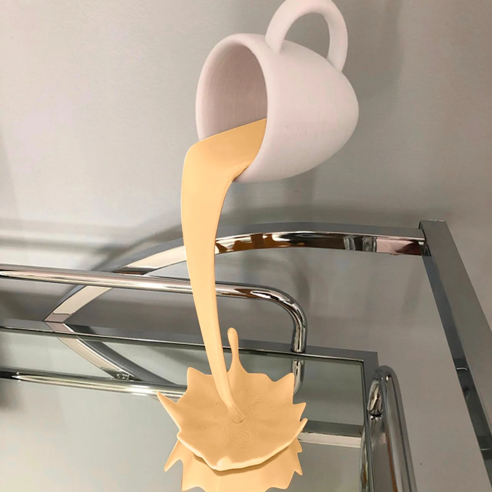 This sculpture art floating pouring coffee cup mug can be right in for any decor style.