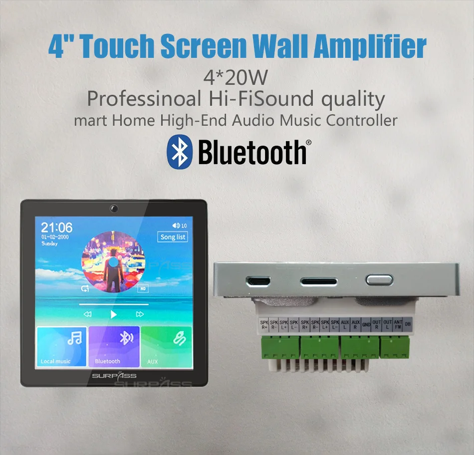 Smart Home Audio 4 Channel Wireless Bluetooth-compatible Wall Amplifier Mini Multifunction Stereo Board Hifi with Fm Radio