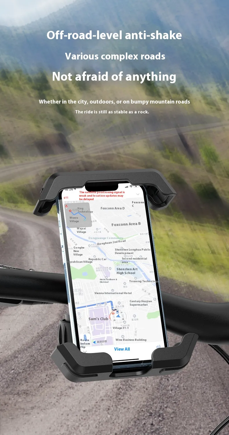 Built with a shock-absorbing structure and strong grip, this bracket prevents your phone from shaking or falling during sudden stops, sharp turns, or uneven terrain. Its robust locking system holds your device firmly in place, keeping your navigation stable and hands-free at all times.