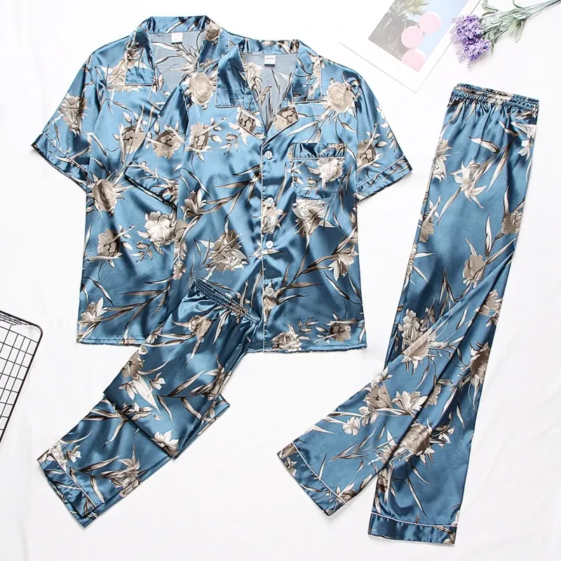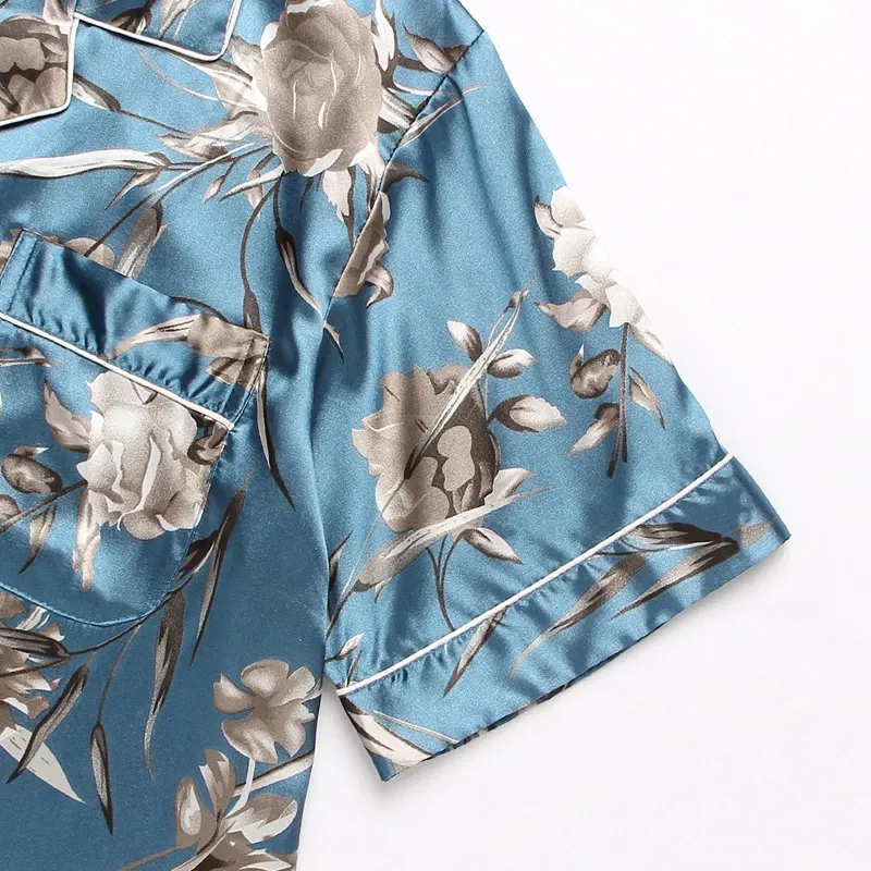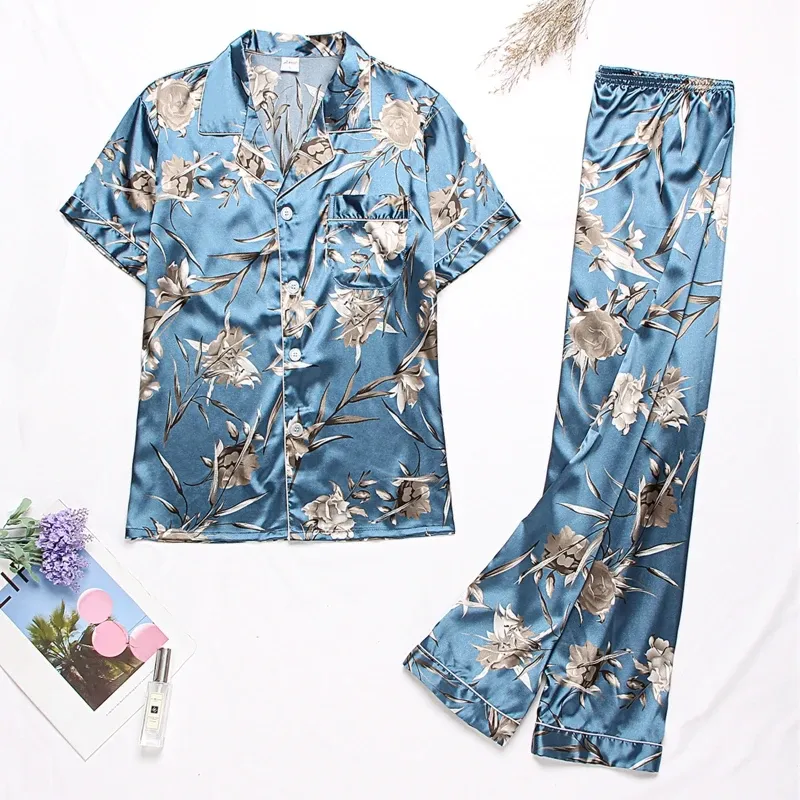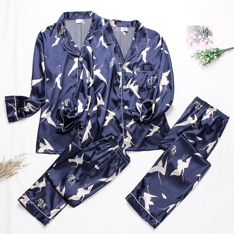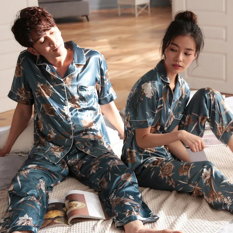 Whether you’re relaxing at home, enjoying a peaceful night’s sleep, or unwinding with your partner, these Silk Couple Pajamas ensure you both experience luxurious comfort. The thin, breathable material keeps you cool without compromising on style, making these pajamas an essential part of any summer wardrobe.