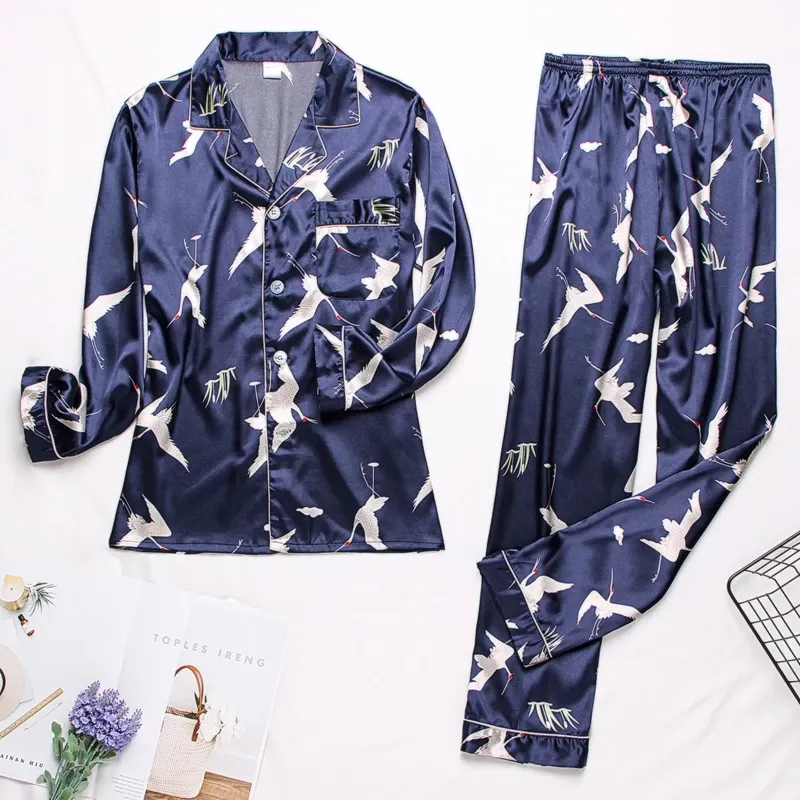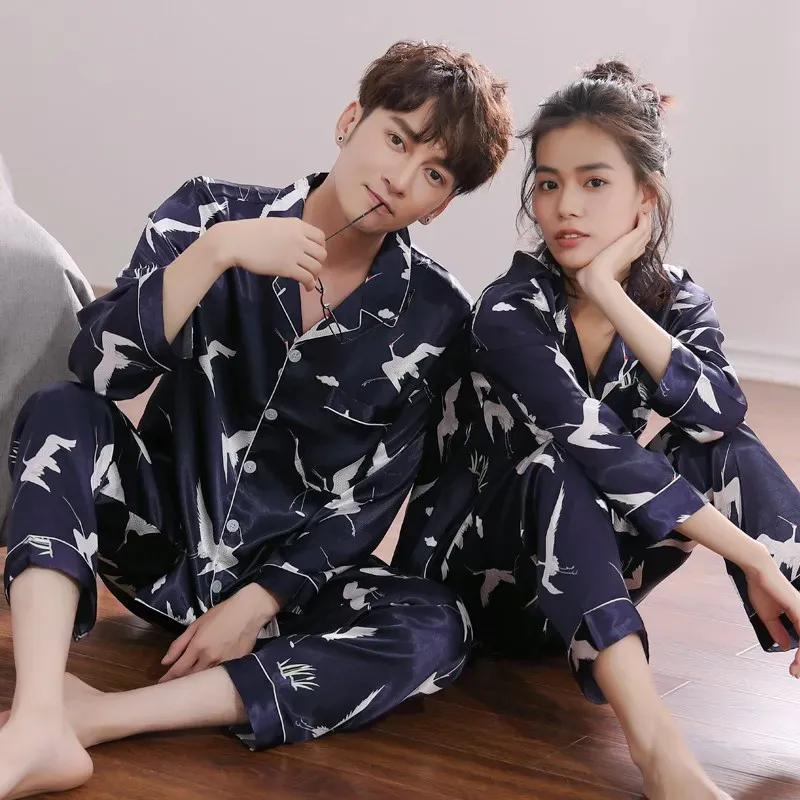 These long-sleeved pajamas are designed with couples in mind, offering matching styles for both men and women. The casual design features a sleek, modern cut that combines both comfort and fashion. The soft texture of the ice silk fabric provides a cool, smooth feel against the skin, making them ideal for those warmer months when you want to feel relaxed and pampered.