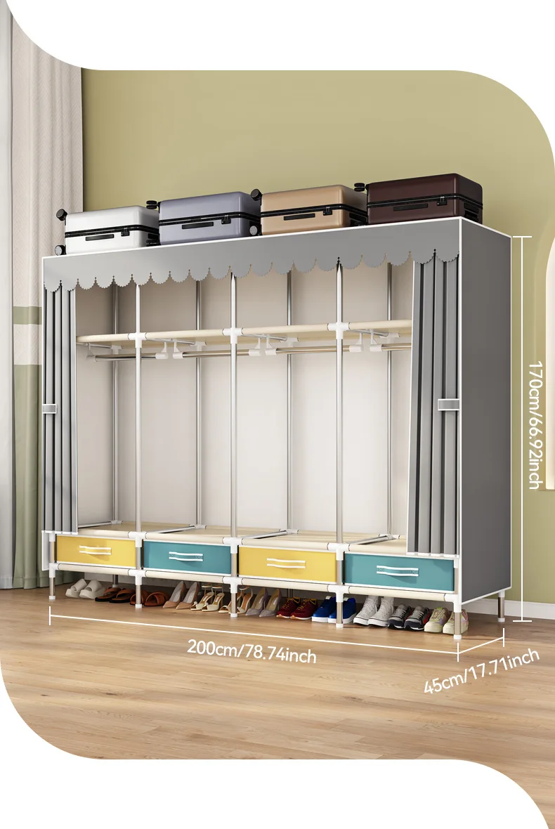 The easy assembly feature makes it a great choice for renters, dormitories, or anyone who requires a portable storage solution. This wardrobe is versatile enough to fit into various living spaces, providing convenience without compromising on durability. Whether you need a wardrobe for your clothes, bedding, or accessories, this storage cabinet will meet all your needs with ease.