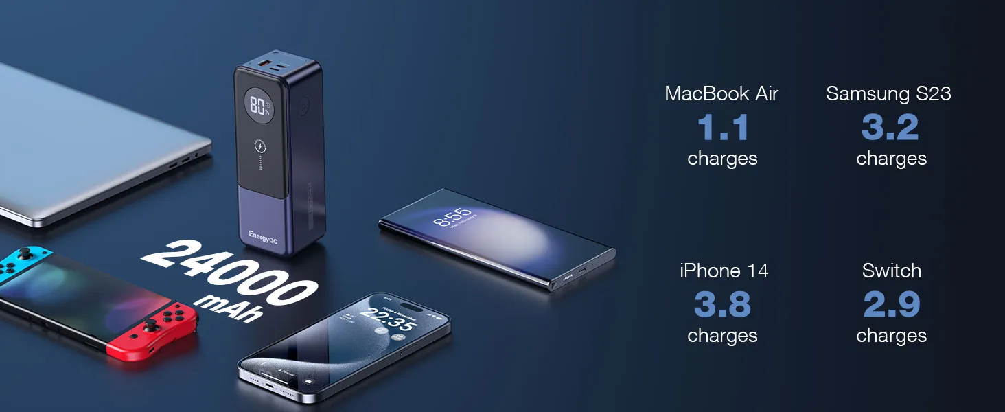 This power bank is compatible with a wide range of notebooks, laptops, tablets, and smartphones that support USB-C PD charging. Popular notebook brands including MacBook, Dell, Lenovo, HP, and ASUS, as well as USB-C smartphones and tablets, can all benefit from its high-speed charging capabilities.