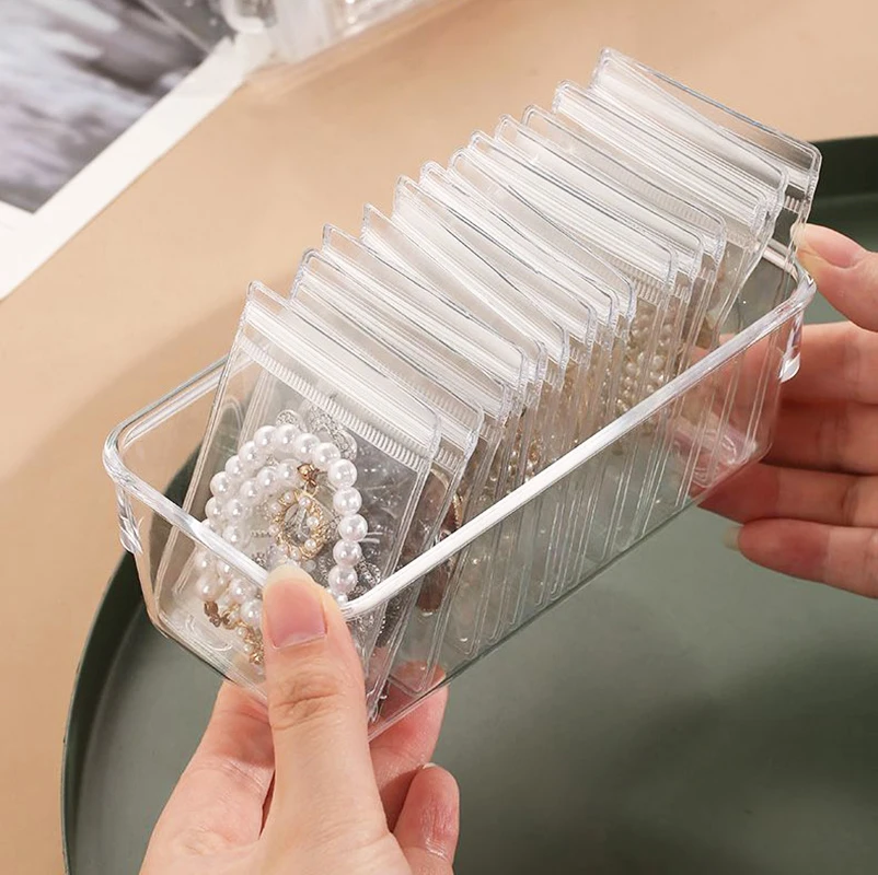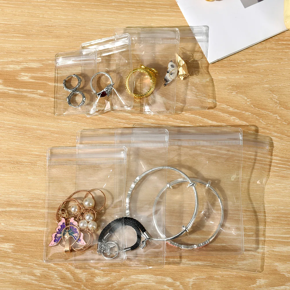 Size: M, Color: MULTI - 100/10Pcs PVC Jewelry Package Bags Thicken Self Sealing Pouches Anti-Oxidation Earring Necklace Clear Organizer Bag Reusable