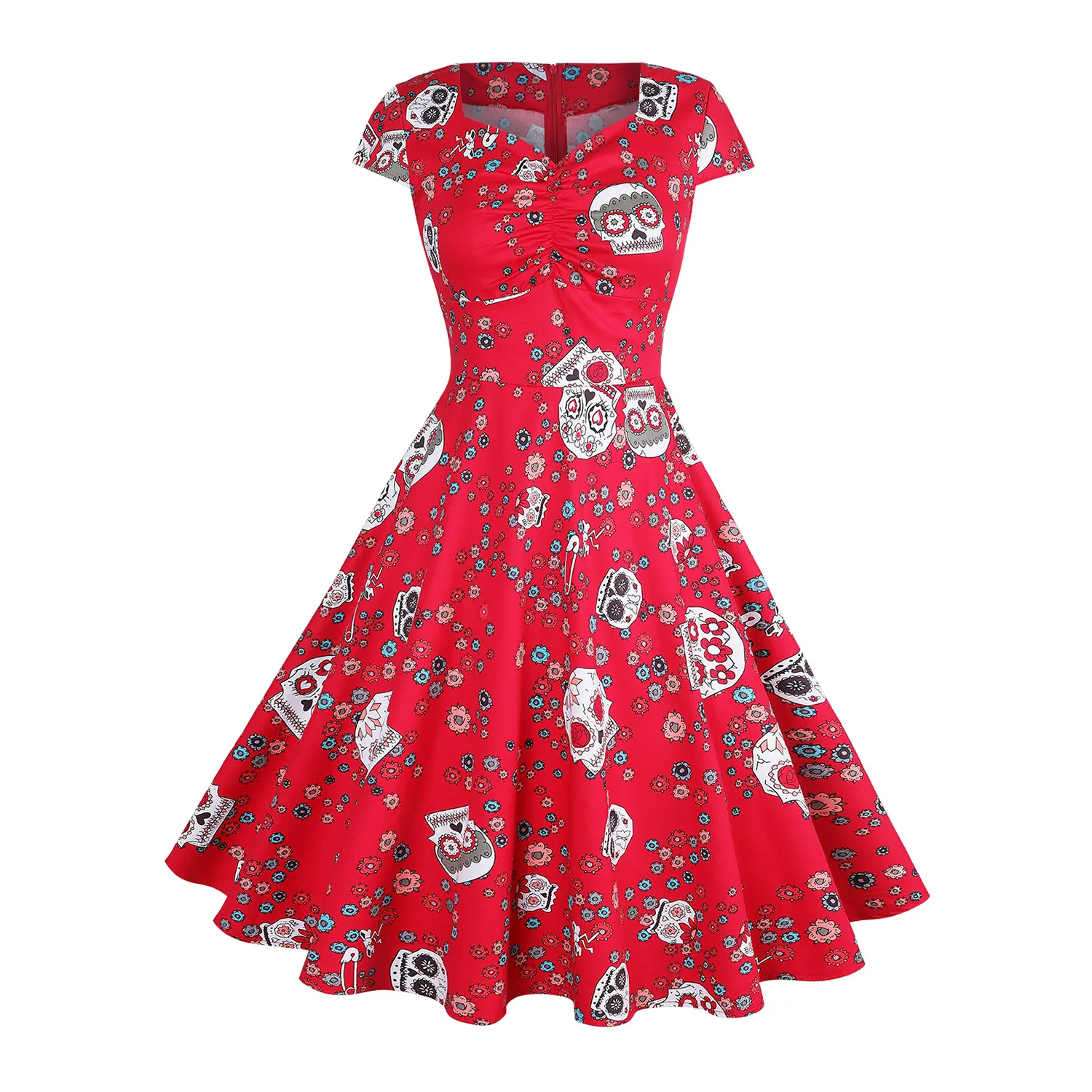 There are various styles of skull maxi dresses available, each offering different designs and interpretations of the skull theme. Here are some popular types of skull maxi dresses: