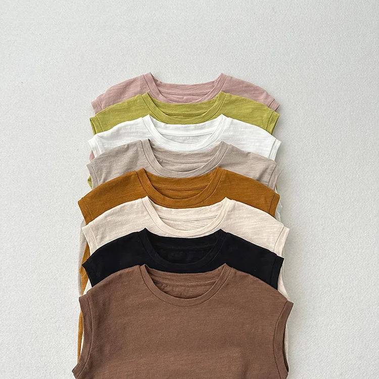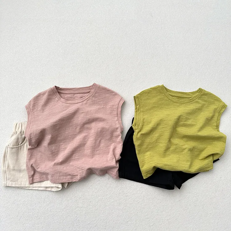 Slub Cotton Sleeveless Drop-shoulder T-shirt For Boys And Girls