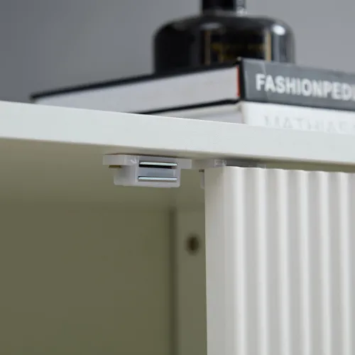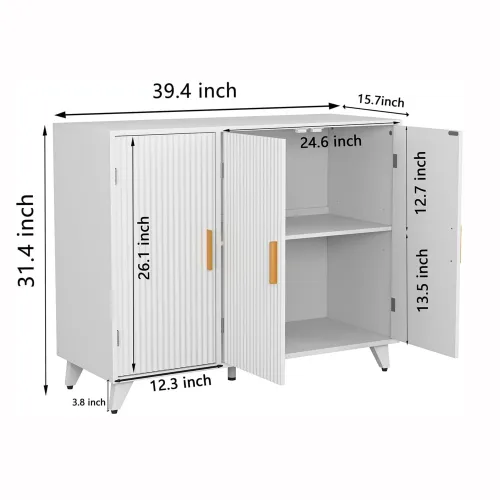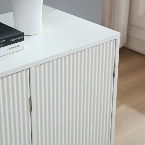 【Unique Ripple Design】This buffet cabinet with storage highlights the white fluted textured body and brass legs, which are eye-catching but