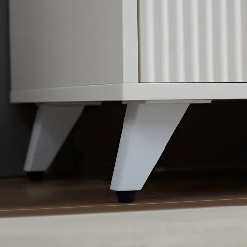 【Unique Ripple Design】This buffet cabinet with storage highlights the white fluted textured body and brass legs, which are eye-catching but